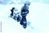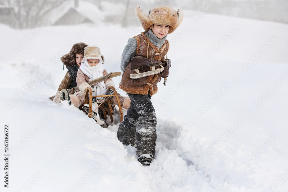Children slide down hills on sleds
