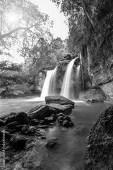 Amazing in nature, beautiful waterfall at colorful autumn forest in fall season