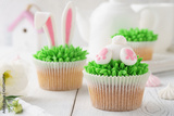 Set of Easter cupcakes for kids. Funny bunny butt and ears.