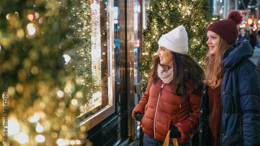 Young women in New York doing Christmas shopping on Fifth Avenue