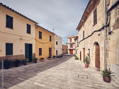 Alcudia old town empty street, color toning applied, Mallorca, Spain.
