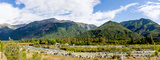 Motorhome in Chilean Argentine mountain Andes. Family trip travel vacation on Motorhome RV in Andes.