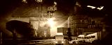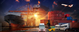Logistics and transportaIndustrial Container Cargo freight ship, forklift handling container box loading for logistic import export and transport industry concept backgroundtransport industry