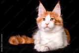 Nice cute maine coon kitten on black background in studio, isolated.