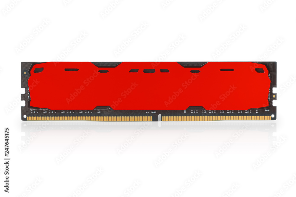 Modern red DDR RAM memory module isolated with clipping path