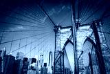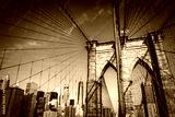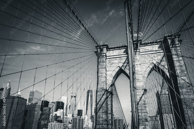 The Brooklyn Bridge in black and white with the new World Trade Center in the background, New York City, USA