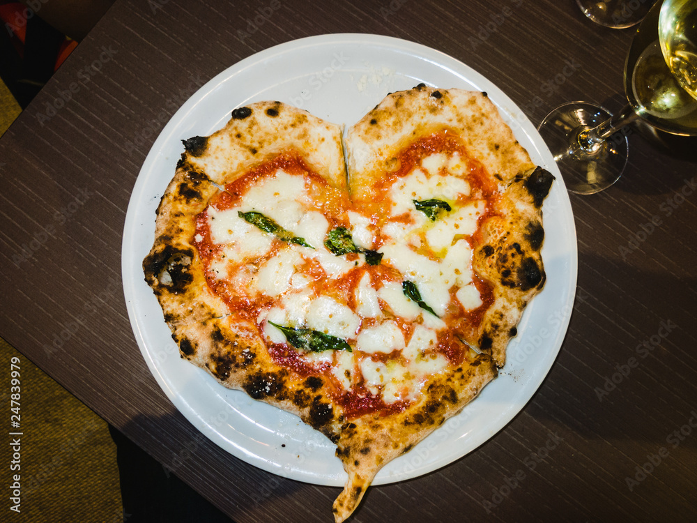 Heart shaped margherita pizza
