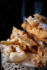 Chrusty, kruche ciastka. Apetyczne delikatne ciastka z kruchego ciasta