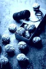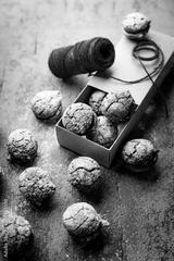 Pieczone czekoladowe ciasteczka. Apetyczne domowe wypieki na kuchennym blacie.