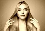 Blonde hair woman. Beautiful model girl with long straight healthy hairstyle. Haircare, hair styling and hair straightener concept