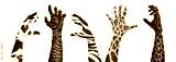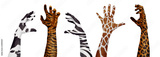 Wild animals skin on human hands. Concept of animal protection, attention to poachers, real skin fashion use. Idea of relation, friendship with animals. Design for posters, banners, advertisement