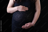 Young Asian Pregnant Mother Holding Tummy With Copy Space