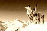 Skiing, winter, snow, sun and fun - kids, boy and girl jumping and having fun in the Alps. Child skiing in the mountains.