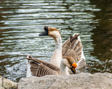 African Geese swimming in pond