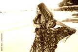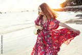 Beautiful girl in boho maxi dress on the beach