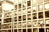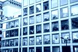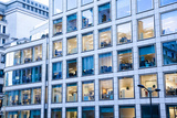 illuminated offices at night people working late