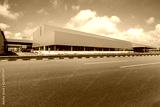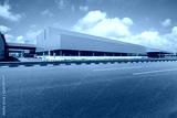 Road asphalt pavement and modern factory warehouse..