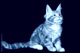Adorable cute maine coon kitten on black background in studio, isolated.