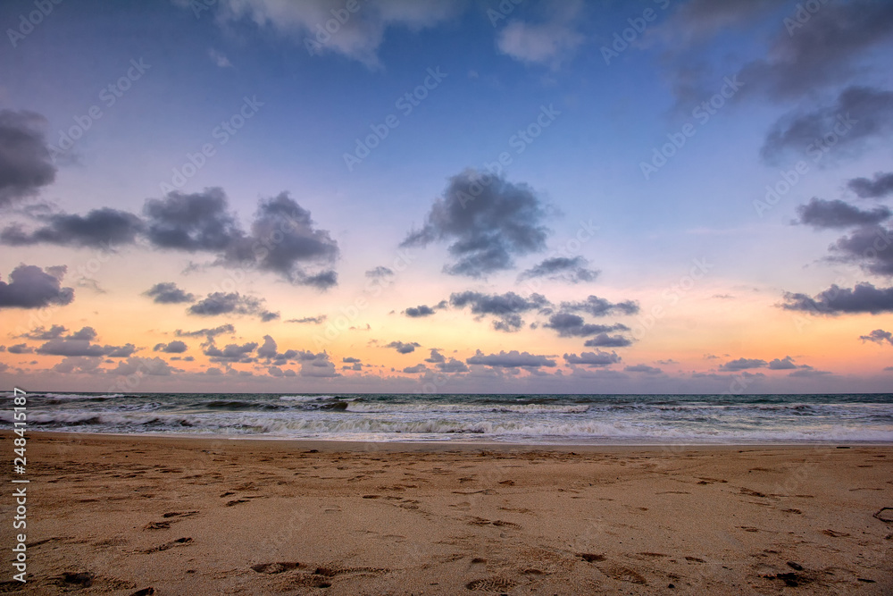 Sand, beach, sky, cloud with sunset