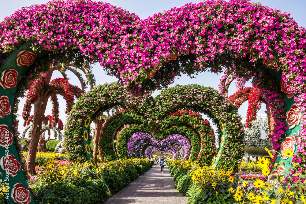 Dubai, UAE: Flower hearts in Miracle Garden in Dubai
