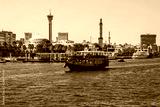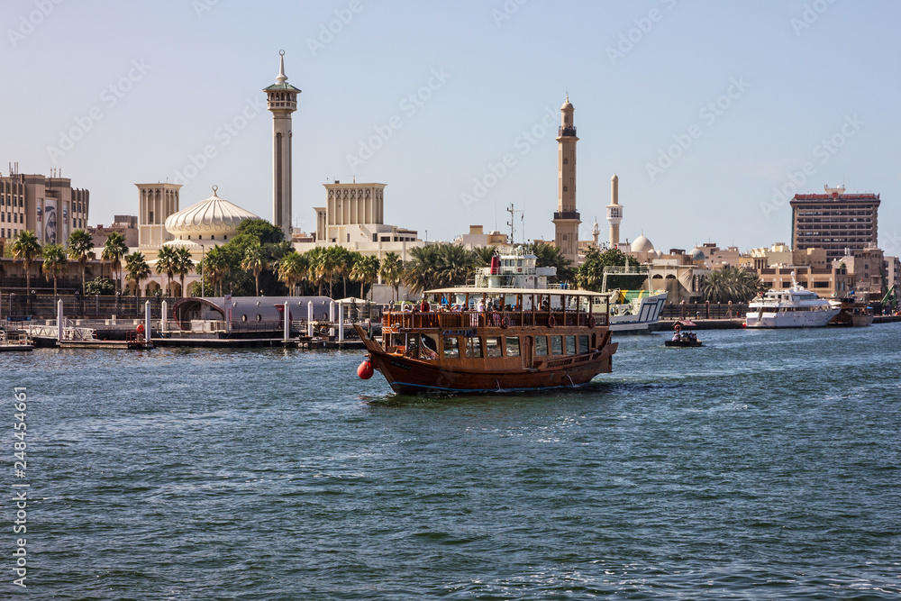 Dubai, UAE: Tourist boat abra on canal of Dubai Creek old tow