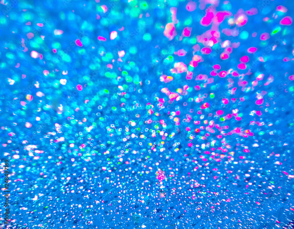 The unfocused blue background of abstract lights for text, banner, poster, label, sticker, wallpaper, layout.