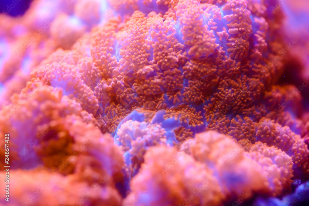 Close up of Orange Red Mushroom Coral (Actinodiscus sp.)