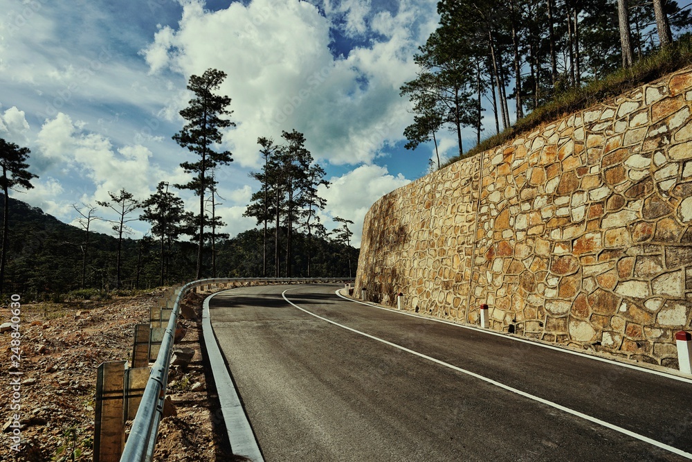 beautiful and empty road among pine forest