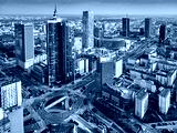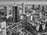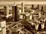 WARSAW, POLAND - FEBRUARY 10, 2019: Beautiful panoramic aerial drone view to panorama cityscape of Warsaw modern City, PKiN and "Rondo 1" office skyscraper located at Rondo ONZ