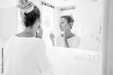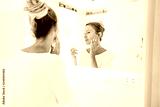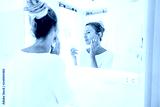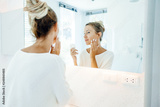 Woman applying face cream in bathroom