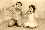 Children, boy girl, naughty floor room They grimace laugh. amusing. Kids bullies Naughty jokers children's fun Restless Child psychology friendship parenting baby 3 years 6 years siblings