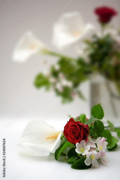 Rose and calla on a white background