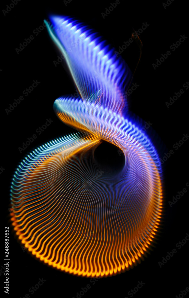 Multicolored twisted ordered parallel lines on a black background
