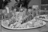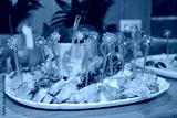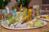 Meat slicing with colorful skewers on cocktail or a buffet table