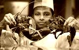 chef holding two canadian lobster to display