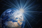 Das Erball, Weltall und binärer Hintergrund als Symbol für Technologie