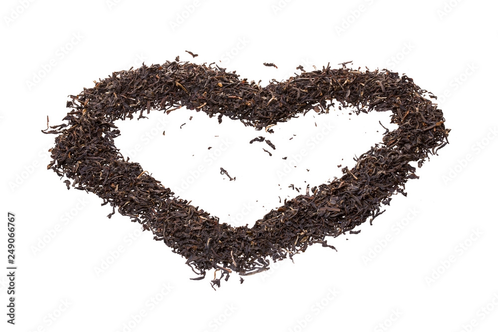 tea heart shaped white background isolated