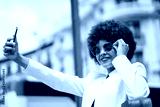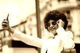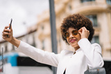 Beautiful girl for afro with mobile phone in the streets of Madrid Spain.