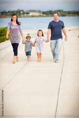 Happy Young Family Walking Together Outside