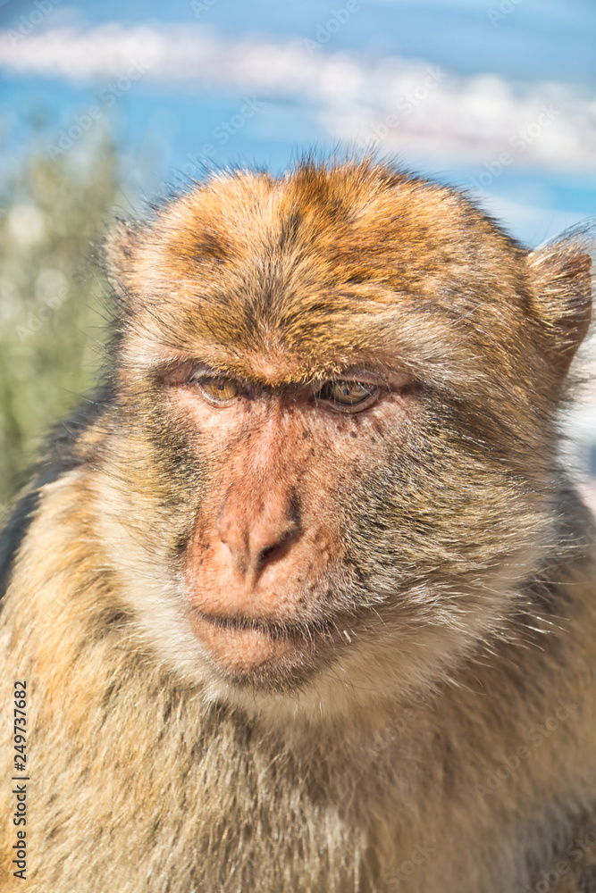 Close-up of the face of a barbary macaque from Gribraltar