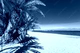 Scenic landscape of palm trees, turquoise water and tropical beach, Vai, Crete, Greece.