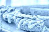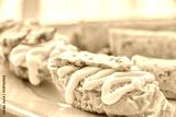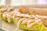 Lettuce buds with roquefort cheese sauce as garnish for some burritos