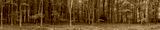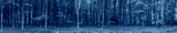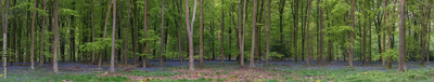 Stunning bluebell forest panoramic landscape image in soft sunlight in Spring