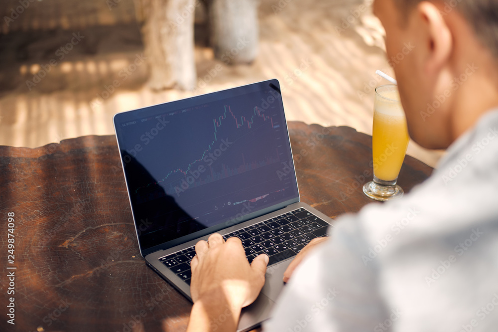 Freelancer Work by Laptop on Tropical Beach