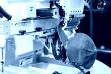 Hat sewing at modern and automatic high technology embroidery machine for textile - clothing apparel making manufacturing process in industrial