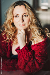 Close up portrait of 35-40 year old woman with blond hair