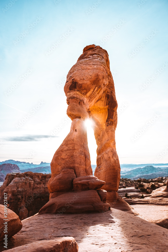Sunset shining through delicate arch