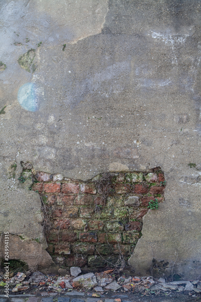 Plaster Missing from Wall Showing Brickwork Underneath