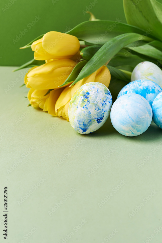 easter theme. eggs and flowers