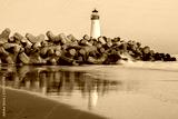 Twilight over Breakwater (Walton) Lighthouse as seen from SeaBright Beach. Santa Cruz, California, USA.